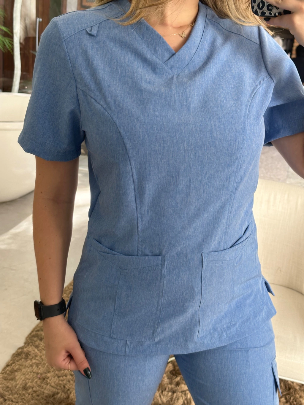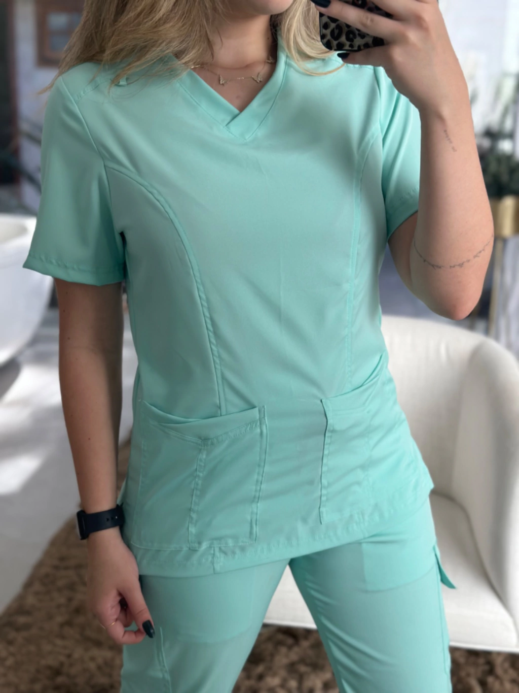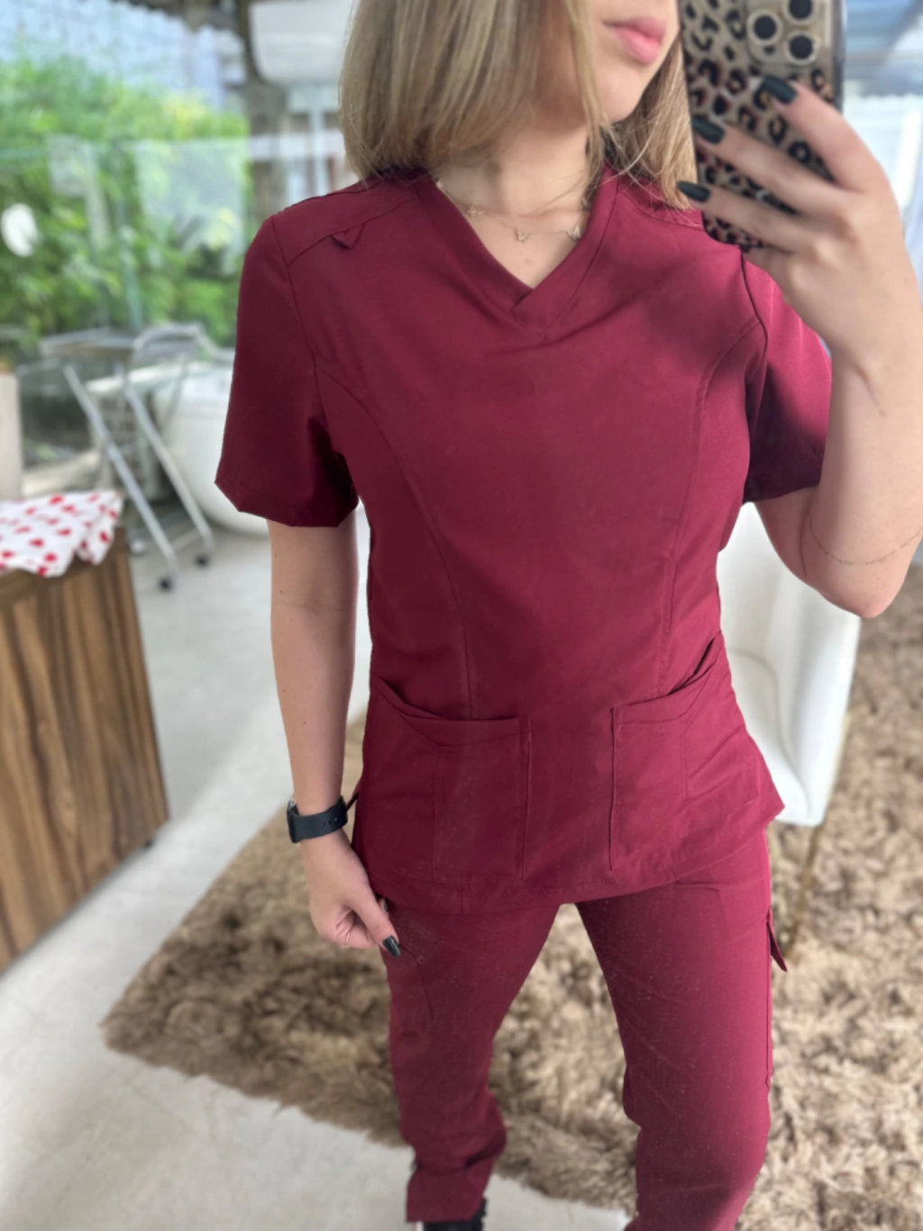 Blusa com 1 bolsos no peito + elático para colocar crachá