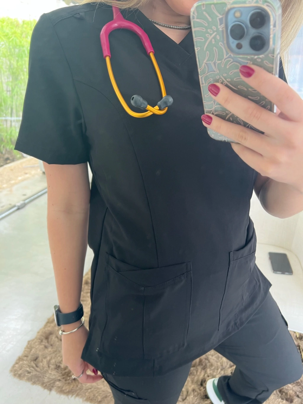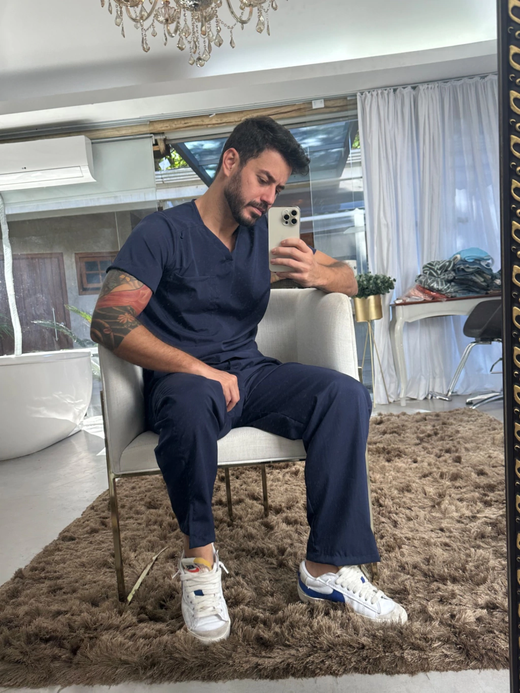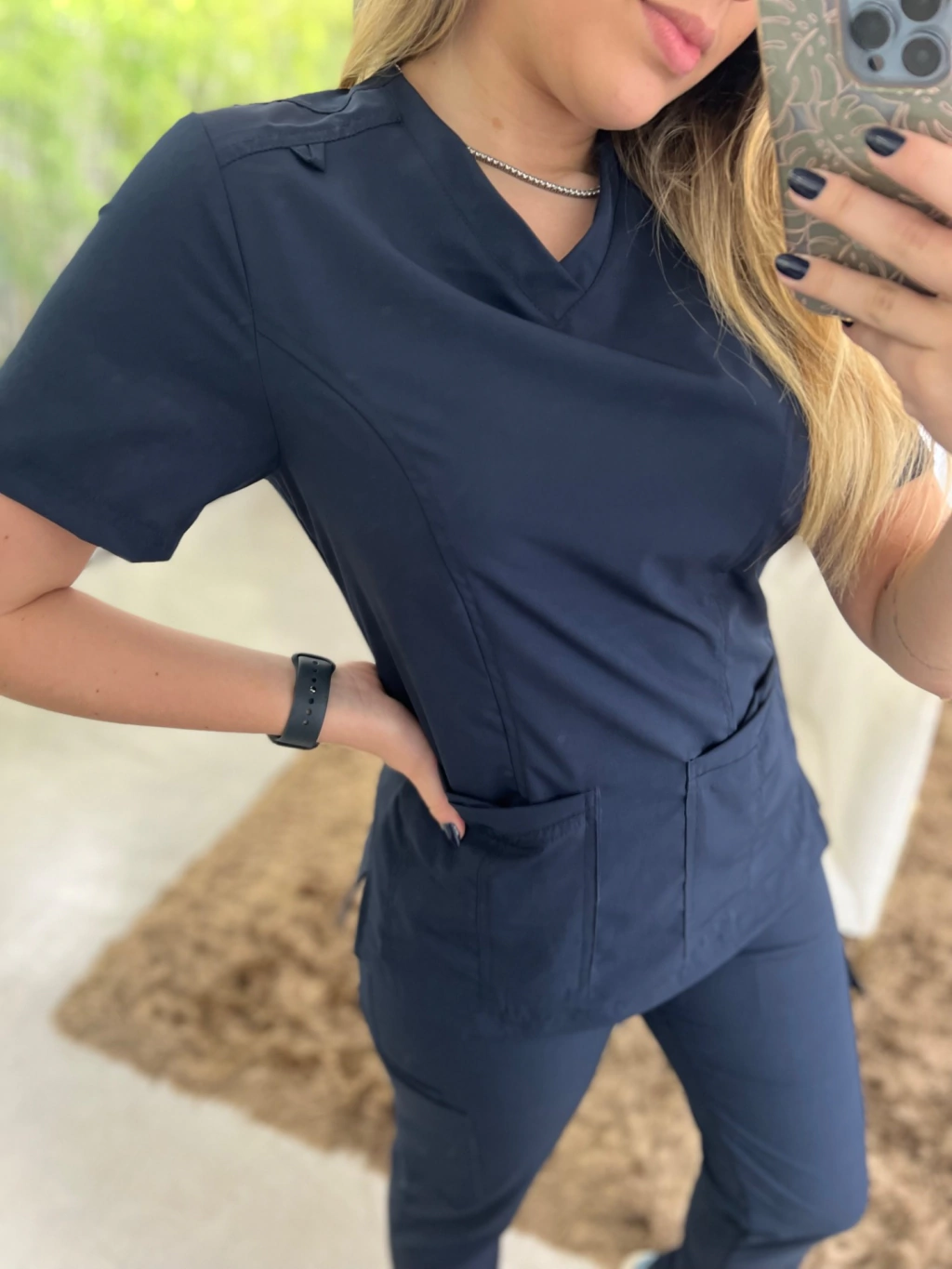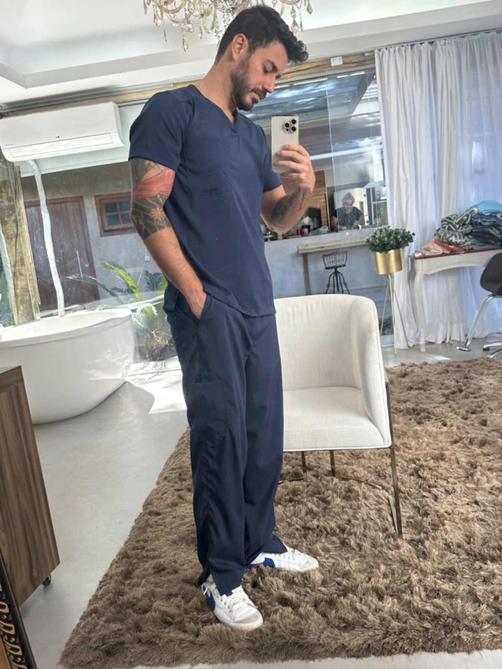 Blusa com 1 bolsos no peito + elático para colocar crachá