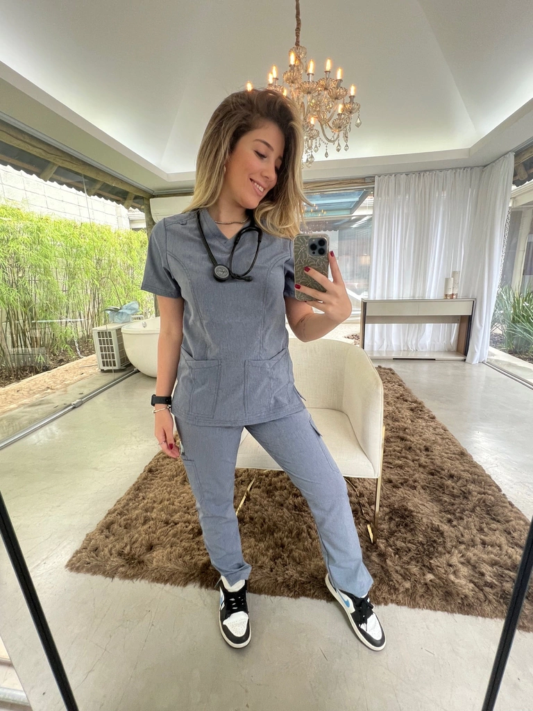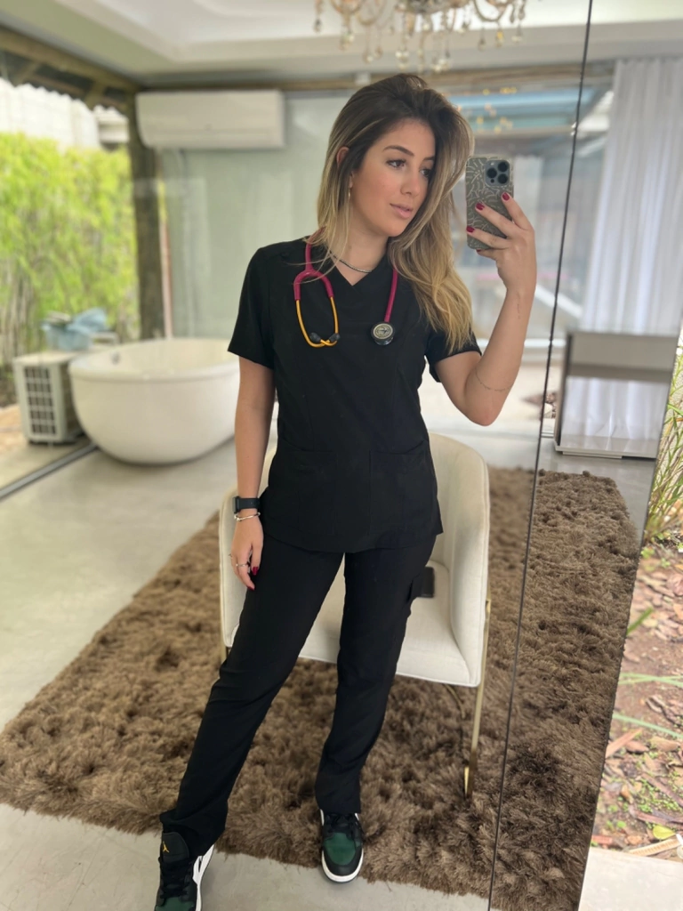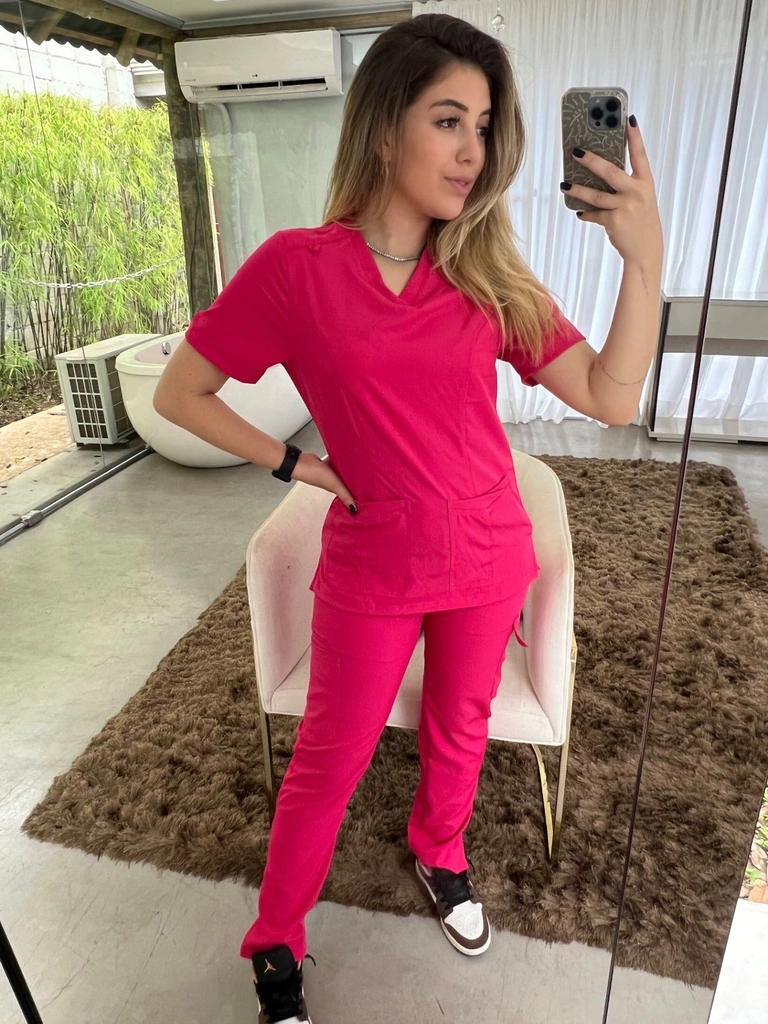 Blusa com 2 bolsos inferiores + elático para colocar crachá